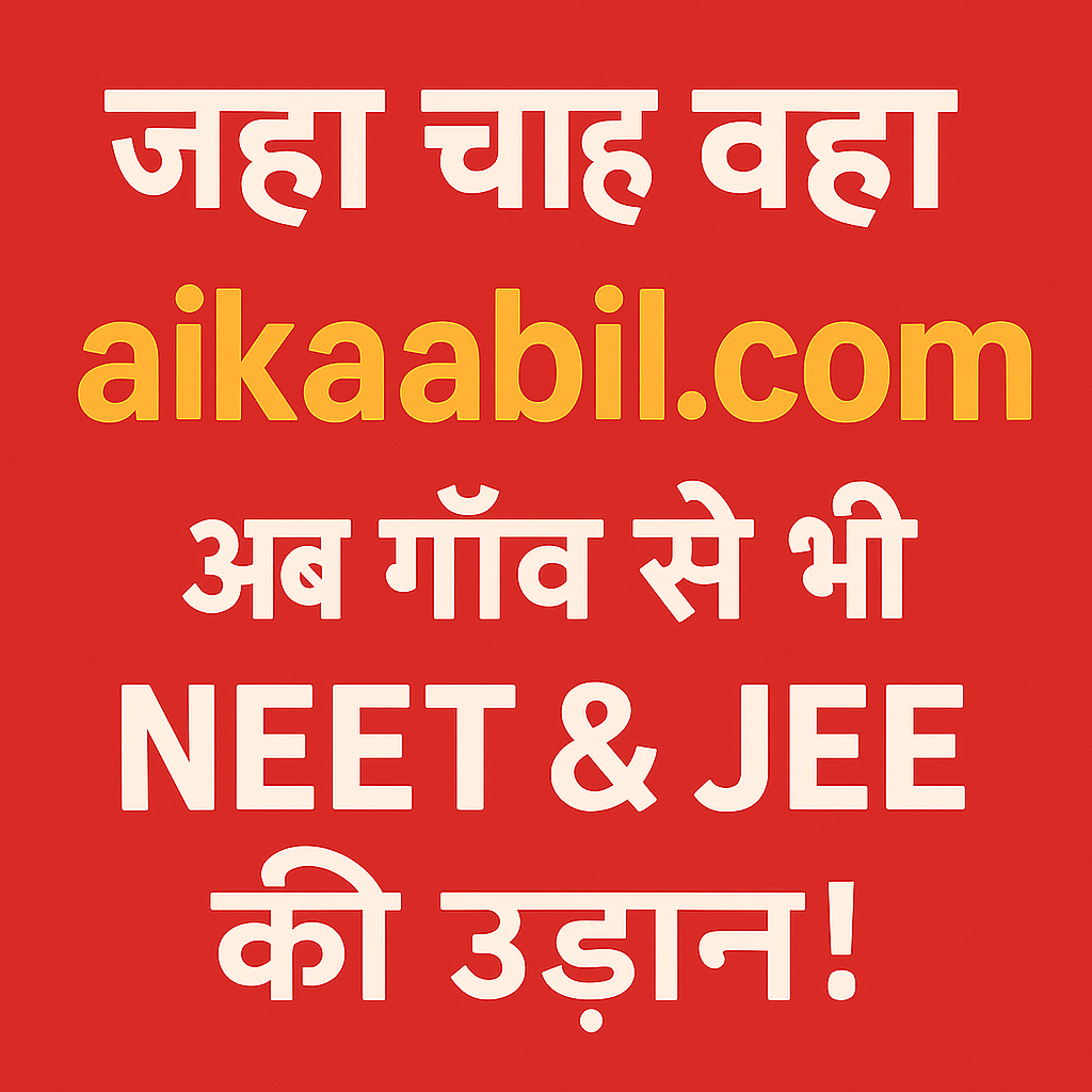 अब गांव का हर कोना बनेगा प्रतिभा का केंद्र। Aikaabil.com के साथ छात्र अब बिना शहर जाए, JEE और NEET जैसी बड़ी परीक्षाओं की स्मार्ट तैयारी कर सकते हैं। ये प्लेटफ़ॉर्म AI आधारित टूल्स, मॉक टेस्ट और ब्रेन IQ टेस्ट के साथ आपको मजबूत आधार देते है।